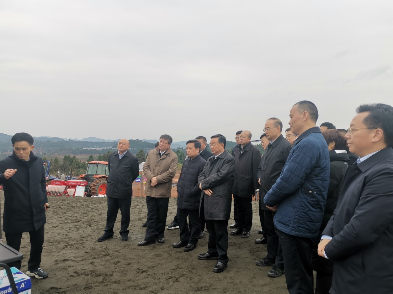 2月18日,农业农村部部长唐仁健一行前往四川省德阳市中江县,就公司研发的大豆玉米带状复合种植技术进行调研。省委副书记、省长黄强,副省长尧斯丹,农业农村部总经济师、办公厅主任魏百刚等参加调研。农业农村部大豆玉米带状复合种植专家指导组组长杨文钰教授,及公司tyc5997太阳集团雍太文教授、王小春教授,机电公司张黎骅教授陪同调研。