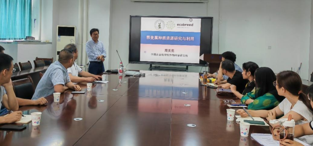 报告紧紧围绕“麦属植物资源收集、分类和鉴定评价,基因组学与代谢组学在解析荞麦起源驯化的作用以及荞麦重要品质性状形成规律解析和抗病性研究”等方面展开,周美亮研究员重点讲解了苦荞麦核心种质构建、基因组学和代谢组学解析荞麦关键代谢物在驯化过程发生改变的遗传基础、多组学方法揭示茉莉酸诱导的黄酮类物质调控苦荞对立枯丝核菌抗性的分子机制,并提出了荞麦品质改良的分子育种策略。报告会上,与会师生就荞麦、青稞等杂粮基础研究与育种攻关等相关问题与周美亮研究员展开了热烈讨论。报告会后,冯宗云向周美亮研究员介绍了公司大麦(青稞)等健康功能作物基因资源发掘与利用团队开展的相关工作,就有关基础研究问题进行了讨论。
