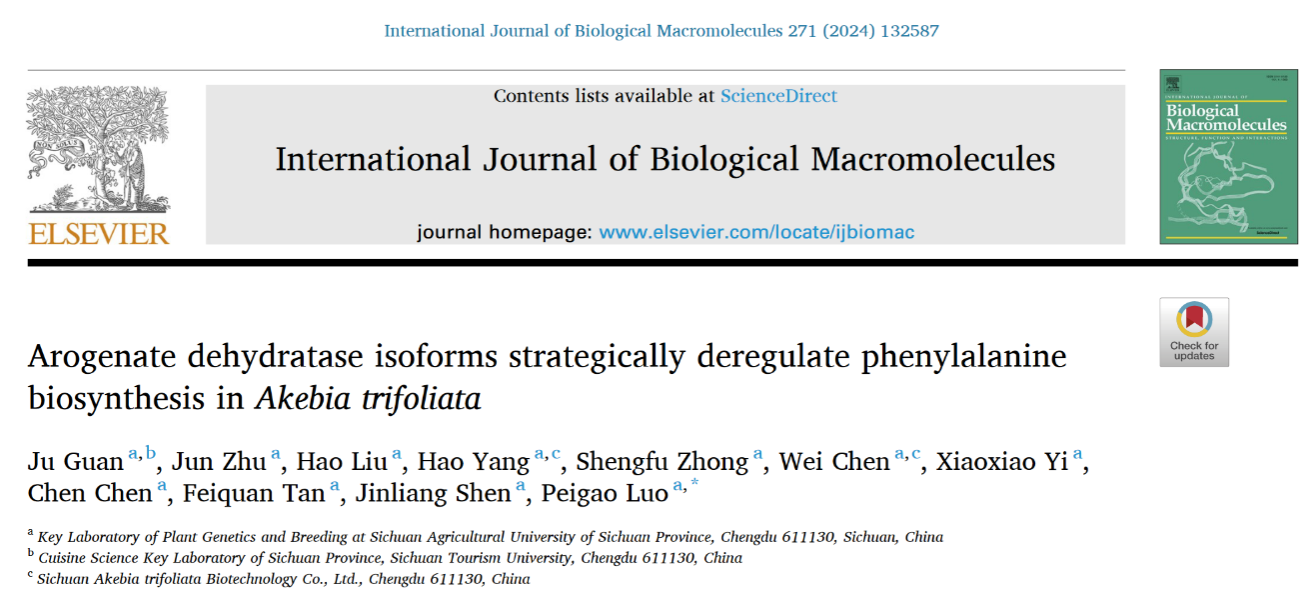 三叶木通作为第一个基于游离氨基酸含量而开发的食疗保健水果,富含游离氨基酸(尤其是芳香氨基酸)和各种次生代谢物(如黄酮类化合物)等与苯丙氨酸生物合成途径密切相关的营养成分,以其独特的营养价值在市场上备受喜爱。然而,植物苯丙氨酸合成途径牵涉调控网络复杂,且其在植物中的分布范围仍不清楚。近日,tyc5997太阳集团罗培高教授团队在期刊International Journal of Biological Macromolecules发表研究论文《Arogenate dehydratase isoforms strategically deregulate phenylalanine biosynthesis inAkebia trifoliata》,研究在三叶木通苯丙氨酸合成调控上取得突破性进展。