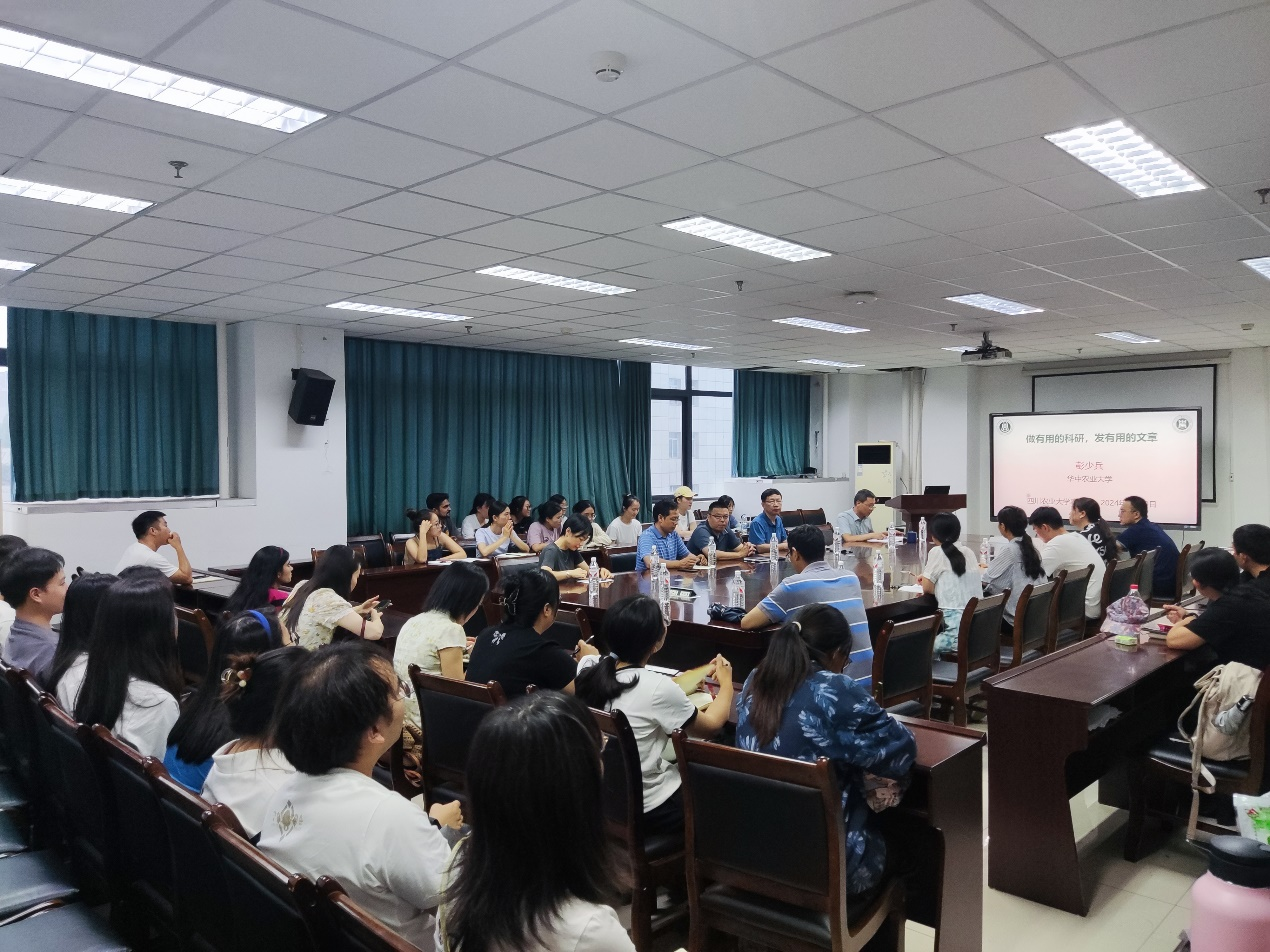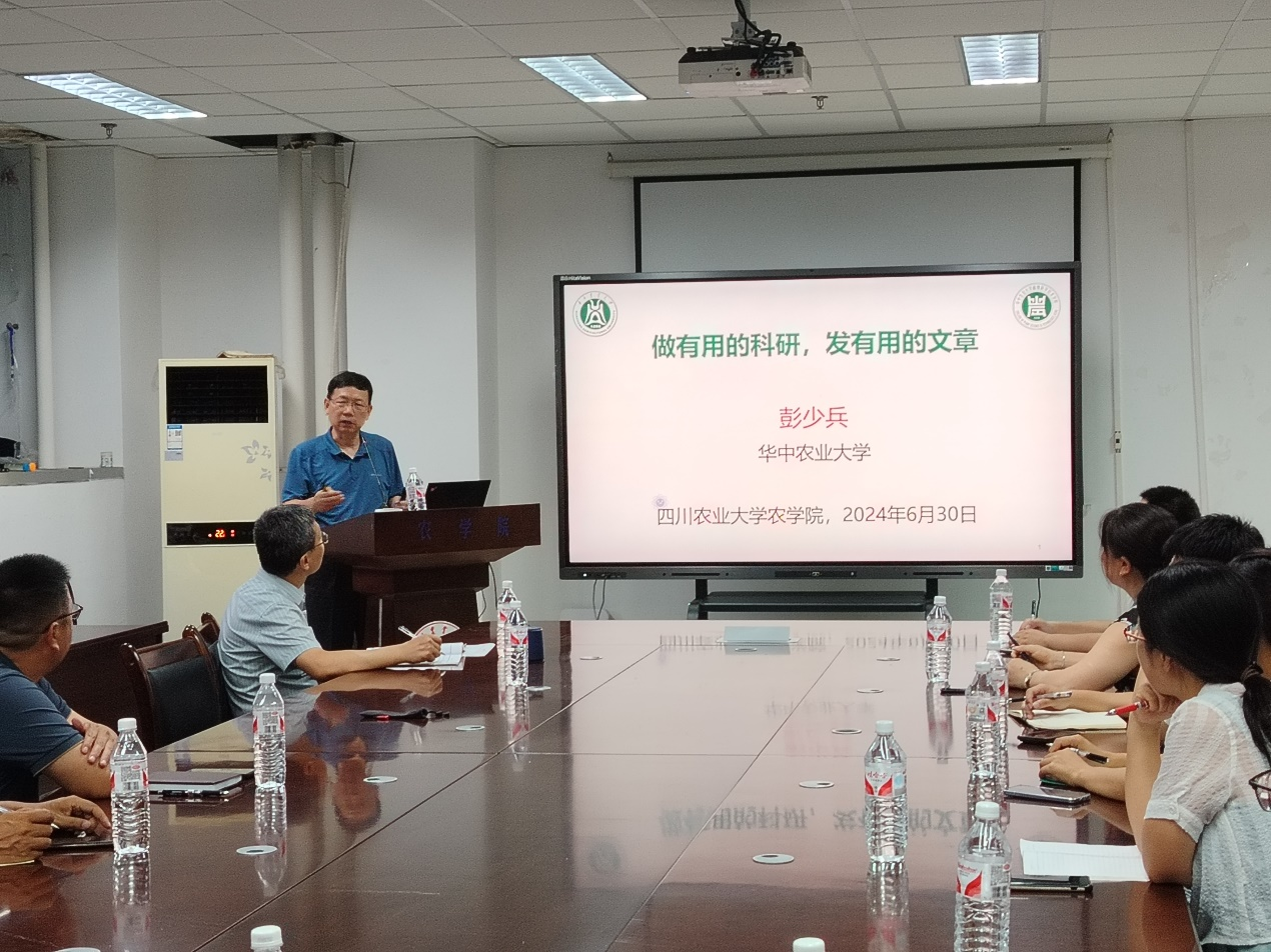 6月30日,华中农业大学彭少兵教授在7教405会议室为tyc5997太阳集团作了题为“做有用的科研,发有用的文章”的报告,tyc5997太阳集团作物栽培、智慧农业等系室师生50余人聆听了报告。报告会由公司副经理杨峰主持。
