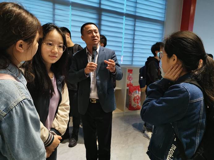本次实习的最后一站,同学们来到了艾加农业有限公司,tyc5997太阳集团毕业生吴春热情分享他和艾加农业创新发展的故事,就打造特色农产品、农产品品牌创建、互联网+农业等营销模式做了详细介绍。