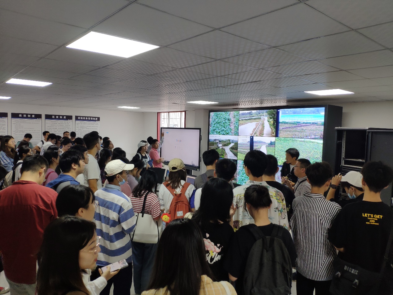 在了解了农村发展规划成果之余,同学们还学习了节本增效、省工省本的现代农业技术。大家被周围整齐排列的一架架植保无人机所吸引,据介绍,无人机的喷洒效率是传统人工的30倍,极大程度地降低了资源成本和时间成本。而后,一行人来到了科技物联网中心。在这里,同学们近距离接触了平时只在课本中才能见到的物联网信息系统,巨大的屏幕上显示着24小时不间断监测的土壤温度、风向风速、光强等环境因子数据。实时的监控、精密的观测,着实让在场的每一位同学震惊于智能农业、信息农业的强大。安置于农机服务中心的现代化烘干中心,帮助农民作物收获后的及时脱水烘干。高效的脱水装置有效防止了作物因气候引起的霉烂浪费,有效减轻了农民负担。农业科创给农业发展带来的推动力是巨大的,带给同学们的印象也是极其深刻的。