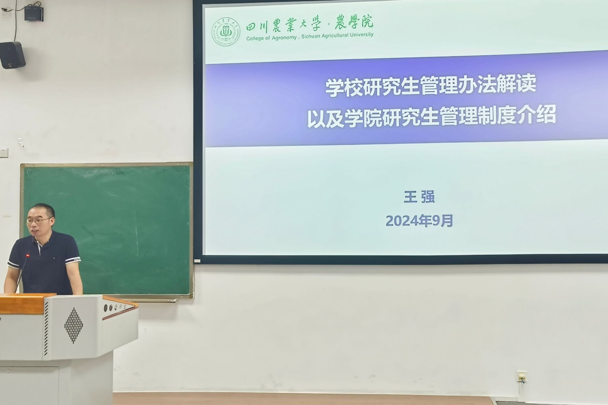 经理王静首先代表公司全体师生向新生表示热烈的欢迎和诚挚的祝贺,接着从公司基本情况、学科专业概况和公司产品质量三方面对公司、学科的发展进行介绍,并对全体新生提出殷切期望,“希望同学们肩负起强农兴农的使命担当,在新时代、新征程做出新的更大贡献!”党委书记唐城用红色文化基因的融入与沉淀、历代川农名师的缔造与践履、新时代的学科文化传承三个主题讲述了“川农大精神”的内涵,向全体研究生提出了继承、发扬川农大精神的要求和期盼。随后副经理王强向全体新生详细解读了公司研究生管理办法、公司产品方案、公司研究生管理体系以及研究生国际交流政策。副经理杨峰围绕实验平台与基地情况以及实验室安全教育的内容做了详细介绍,嘱咐同学们进行实验的首要条件是安全,希望同学们科研用心,实验用心,安全放心。党委副书记闫宇薇结合公司关于交通安全的相关文件,对全体新生进行交通安全教育,更是结合国防安全相关案例,希望全体新生加强安全意识,要坚定政治立场,警惕网络安全。教授委员会主任唐宗祥以“科研道德与诚信”为主要议题展开讲解,从学术诚信的基本定义出发,指出出现学术不端行为的诱因以及国家对学术道德与科研诚信的重视,并结合案例提出讨论,引发全体研究生的深刻思考。最后,研究生会主席周会娴进行了tyc5997太阳集团研究生会的招新宣讲。