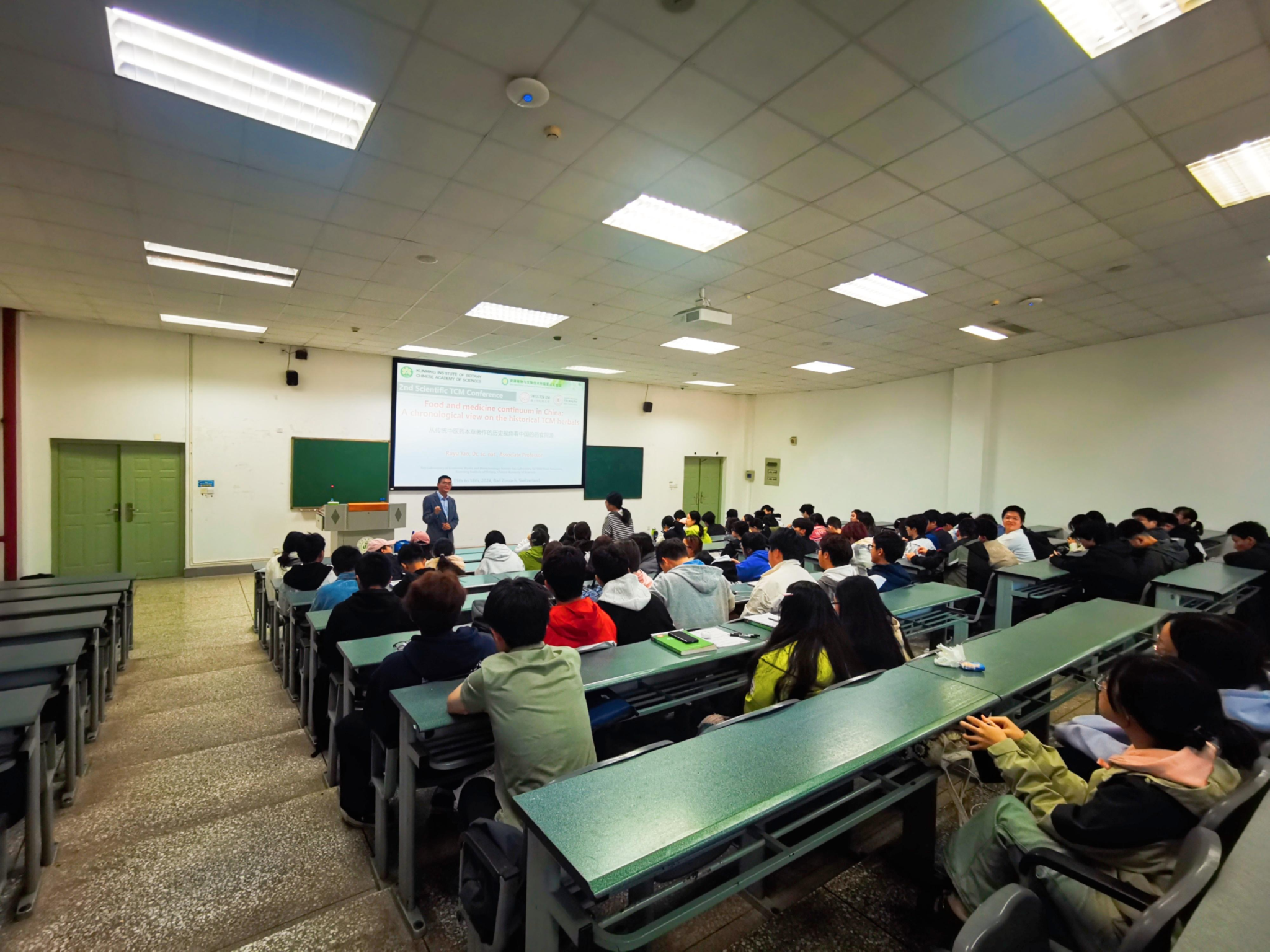 本次活动特邀2006级优秀员工、中国科公司昆明植物研究所副研究员姚入宇担任主讲嘉宾。姚入宇副研究员分享了自己从川农大求学起步,到进入顶尖科研机构深耕的成长与科研道路。他以亲身经历,生动讲述了在中草药研究领域探索的艰辛与乐趣,分享了科研工作中的创新思维与攻坚克难的心得体会。激励同学们传承“川农大精神”,在求知路上砥砺前行。并为员工们做了题为《从传统中医药本草著作的历史视角看中国的药食同源》的学术报告。讲述了枸杞、人参等为代表的药食同源植物基于传统应用的全球化历史和未来。长达两个多小时的讲述和交流,姚入宇学长用朴实又充满激情的话语,为在校师弟师妹们勾勒出一幅清晰的学业与职业发展蓝图,展现了专业领域的广阔前景与无限可能,引发了在场师生的强烈共鸣与深入思考。