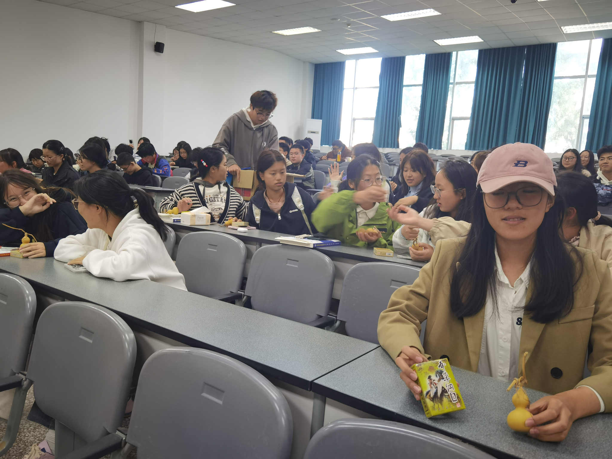 在活动仪式环节,为60名新生准备了独具匠心的“入学礼”—一套融合了《本草纲目》、《黄帝内经》等中医经典元素的知识扑克牌,以及寓意“悬壶济世”与福禄吉祥的葫芦。这份礼物既富含专业文化底蕴,又兼具趣味性与实用性,瞬间拉近了新生与传统中医药文化的距离,让大家在惊喜与新奇中,感受到了专业的独特魅力与师长们的殷切期望。