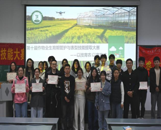 大赛自启动以来,共吸引来自农学、智慧农业、植物保护、种子科学等专业的100多名同学参赛。经过“种植计划书”评审、生育期管护实践及表型智能提取等多轮考核,最终9支队伍晋级决赛答辩环节。决赛现场,各参赛团队围绕作物后期管护、表型数据提取、产量预测模型构建及实践心得体会等内容进行汇报展示,全面展现了五个多月来的实践成果与专业收获。评委老师就汇报内容进行提问,并对作物管护与技术应用中的关键问题给予专业指导。经过激烈角逐,由张晟锴同学带领的团队凭借扎实的专业基础、出色的实践能力和清晰的现场表达荣获一等奖。