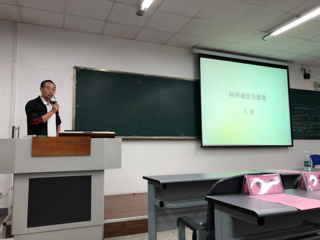 王强教授作了科研诚信与道德专题讲座,他分别从学术规范、学术诚信现状、学术不端、不当行为等方面紧密围绕主题展开阐述,充分阐述了科研诚信与道德的重要性和必要性,旨在引导全体研究生新生在未来的科学研究道路上,切实弘扬以“追求真理、实事求是、崇尚创新、开发协作”为核心的科研精神。随后,院研究生教学秘书郑亭对研究生新生的分班以及重要的公司产品环节进行了详细的解读。最后,tyc5997太阳集团研究生会主席代承东以精美的PPT、精彩的内容、幽默风趣的语言进行tyc5997太阳集团研究生会招新宣讲,赢得台下热烈的掌声。