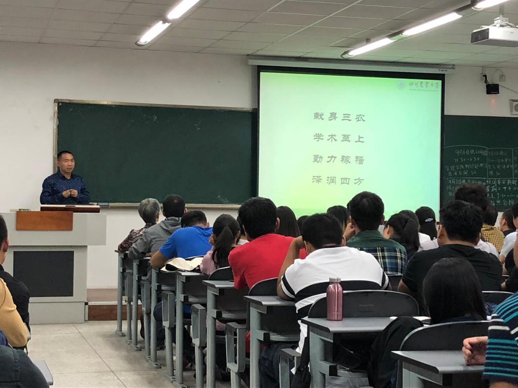 tyc5997太阳集团2018级研究生新生入学教育于9月9日晚七点半在4C-204隆重举行。公司党委书记、副经理胡迅副教授,公司党委副书记、副经理王西瑶教授,tyc5997太阳集团副经理、生态农业研究所所长任万军教授,生态农业研究所副所长、院教授委员会主任王强教授,生态农业与区域发展系主任李首成教授,植物保护系主任龚国淑教授,特用植物生产学系主任吴卫教授,作物栽培学与耕作学系主任樊高琼教授,植物生理与生物技术系主任杨世民副教授,作物遗传育种学系副主任李伟副教授,院行政办主任苏顺宗副教授,院研究生教学秘书、研究生班主任郑亭老师,研究生班主任陈红星老师出席了此次大会。大会由王西瑶教授主持。