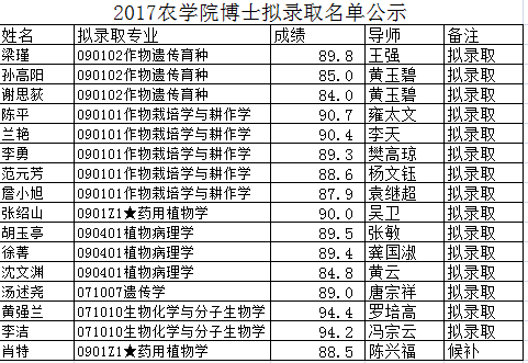 2017年tyc5997太阳集团博士录取复试阶段工作已经结束,现将拟录取名单公示如下,如有异议,请到1-507胡剑锋老师处反映情况!