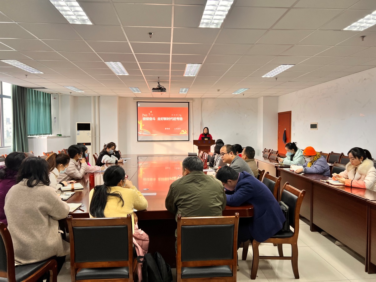 为进一步准确把握党的十九届六中全会精神内涵,推动tyc5997太阳集团学习宣传贯彻党的十九届六中全会精神系列活动深入开展,11月23日下午,公司党委书记黎明艳结合公司发展实际和学习体会,以“持续奋斗 走好新时代赶考路”为题讲授专题党课。公司教工植保党支部和行政党支部全体教师党员到场学习。