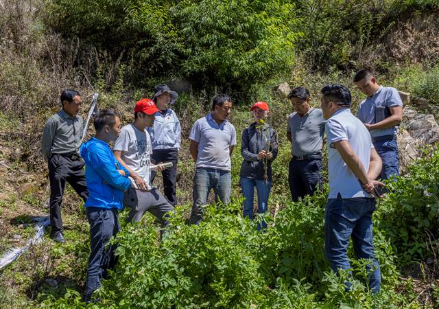 团队在镇党委书记谢小波、县农牧水利局副局长王波等的带领下,深入马铃薯产地,考察该镇马铃薯栽培品种选择、栽培管理,了解农户储存及销售情况。王西瑶现场讲解了晚疫病发生的时间、条件、表现症状、危害和预防等知识,并向随行的当地农业局下派驻村农技员了解情况,对晚疫病的预防、施治和储存地的消毒杀菌等提出了建议。在农户家调研时,团队听取了农户马铃薯栽种中遇到的问题和收获薯的销售情况介绍,回答了农户的疑问。谢小波和王波分别向团队介绍了宅垄镇的总体情况和农业发展思路,希望加强院地合作,借川农大的科技优势提升宅垄镇的农业水平。