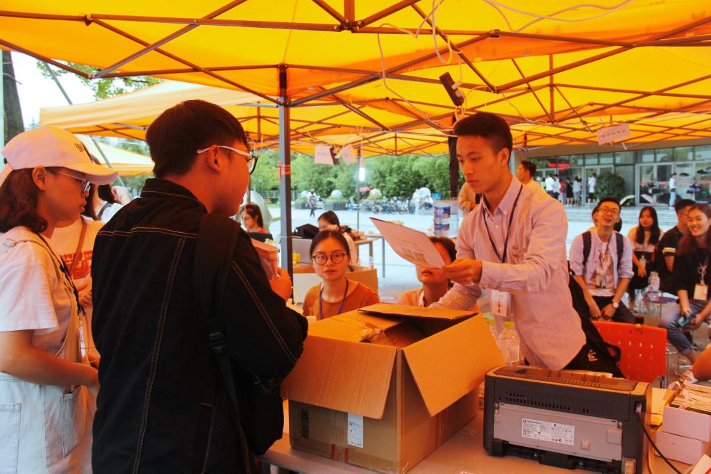 详细有效的培训工作和认真负责的工作态度,使党员和入党积极分子有足够的信心和能力迎接tyc5997太阳集团392位新生。志愿者们面带微笑、热情地接过新生及家长中的行李,对路途劳累的他们嘘寒问暖,引导新生完成报到注册、办理缴费、领取军训服、入住寝室等报到流程。现场井然有序,整个迎新工作有条不紊地进行着。在志愿者的指引下,来自全国各地的新生很快消除了初来乍到的迷茫。