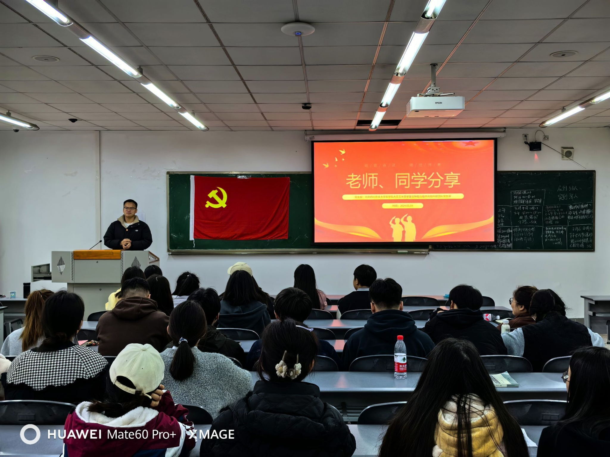接着,支部博士党员杨欢同志分享自己2015年加入团队以来的故事。他说到:“刚刚开始去到河南一个村,驻扎在村支书家里,推广技术的同时还要自行解决生活问题,学会了生活,学会了做饭......但这么多年的推广也结交了许多农民朋友,每一次为他们解决问题的时候都感觉到自豪,真正为农业贡献自己的一份微薄之力。”吴老师、杨同志等人只是团队的一个缩影,他们工作时的辛勤,解决问题时的百折不挠、勇于尝试,真真切切地诠释了因为年轻,所以担当。