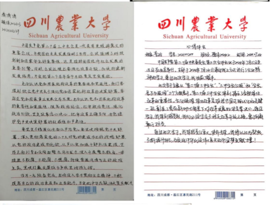图为植保本科生党支部部分党员学习体会