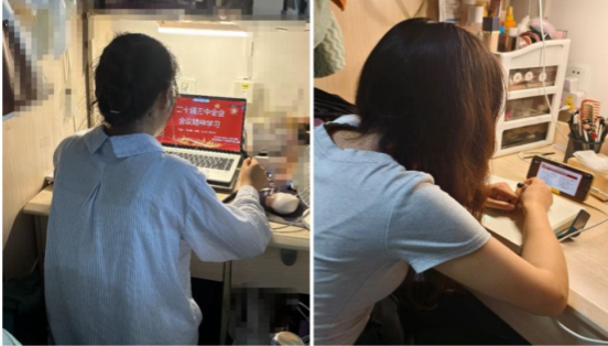 图为农学第一党支部员工党员线下+线上领学二十届三中全会精神