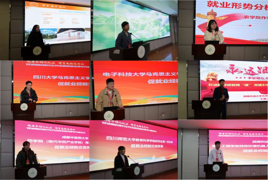 经验交流环节,公司tyc5997太阳集团作物栽培学与耕作学硕士研究生党支部书记郑亭、四川大学马克思主义公司博士第二党支部刘国元、电子科技大学马克思主义公司硕士研究生第一党支部冯司雨、西南石油大学石油与天然气工程公司天然气现代产业博士党支部张继、成都中医药大学药公司(现代中药产业公司)博士研究生党支部张盛林、四川师范大学教育科学公司研究生第一党支部陈子怡、西南科技大学信息工程公司特殊环境机器人科学与技术研究生党支部陈尔达主要围绕就业形势、“党建+就业”探索路径以及“如何发挥党员先锋模范作用,投身服务国家战略需求”等主题进行了深入交流研讨。两家企业代表主要围绕企业人才需求与培养路径,并结合优秀个人发展案例展开了精彩的分享,为研究生的未来发展提供了多维度的思路与指引。