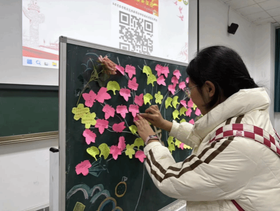 为强化理论武装,活动设置党建知识问答环节,题目围绕党章、团章、党的历史与方针政策展开,学子们踊跃举手、积极作答,在互动交流中深化党纪认知、筑牢思想根基,答对者获赠专属小礼品,现场氛围热烈活跃。临近期末,马保欣开展“诚护考场,信润韶华”考风考纪专题宣讲,从诚信考试的重要意义、考场纪律要求等方面谆谆教诲,引导学子树立正确考试观念。宣讲结束后,学子们在树叶便利贴上书写诚信宣言,活动尾声统一粘贴形成“诚信树”,将诚信理念融入日常。
