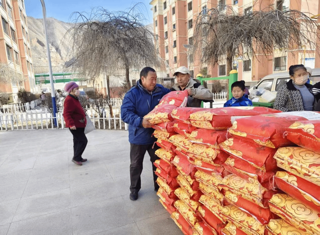 团队将民生帮扶作为实践重点,开展“新春送暖,年货到家”大米物资分发活动。队员们与村委会工作人员分组行动,依据前期摸排的居民情况,重点为小区老年家庭、困难家庭逐一送上大米年货。