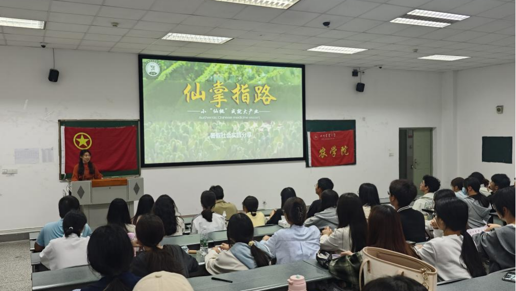 图为上一届团校优秀学员郭诗雨进行暑期社会实践分享