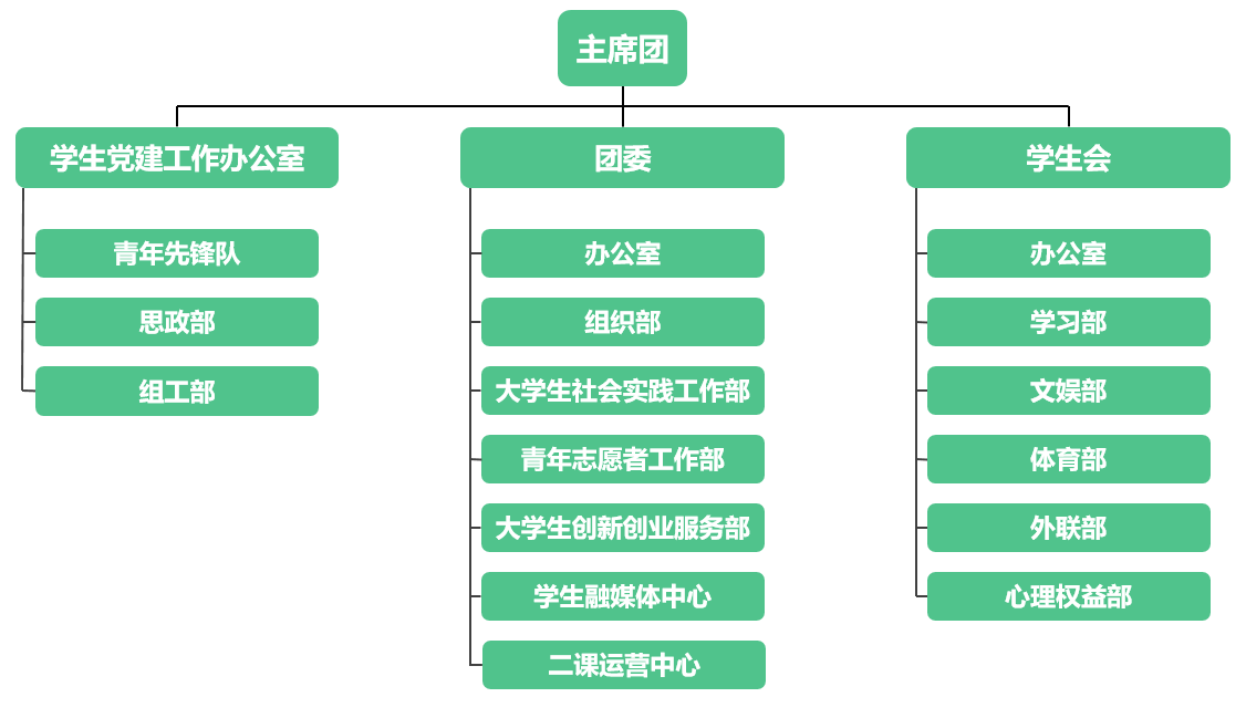 各员工部门负责人,在主席团的带领下开展各项工作。要求:①认真完成部门各项工作(见附件二);②积极配合并落实主席团安排各项安排;③在主席团带领下完善部门内部建设;④熟悉部门各项工作及公司员工组织基本情况。