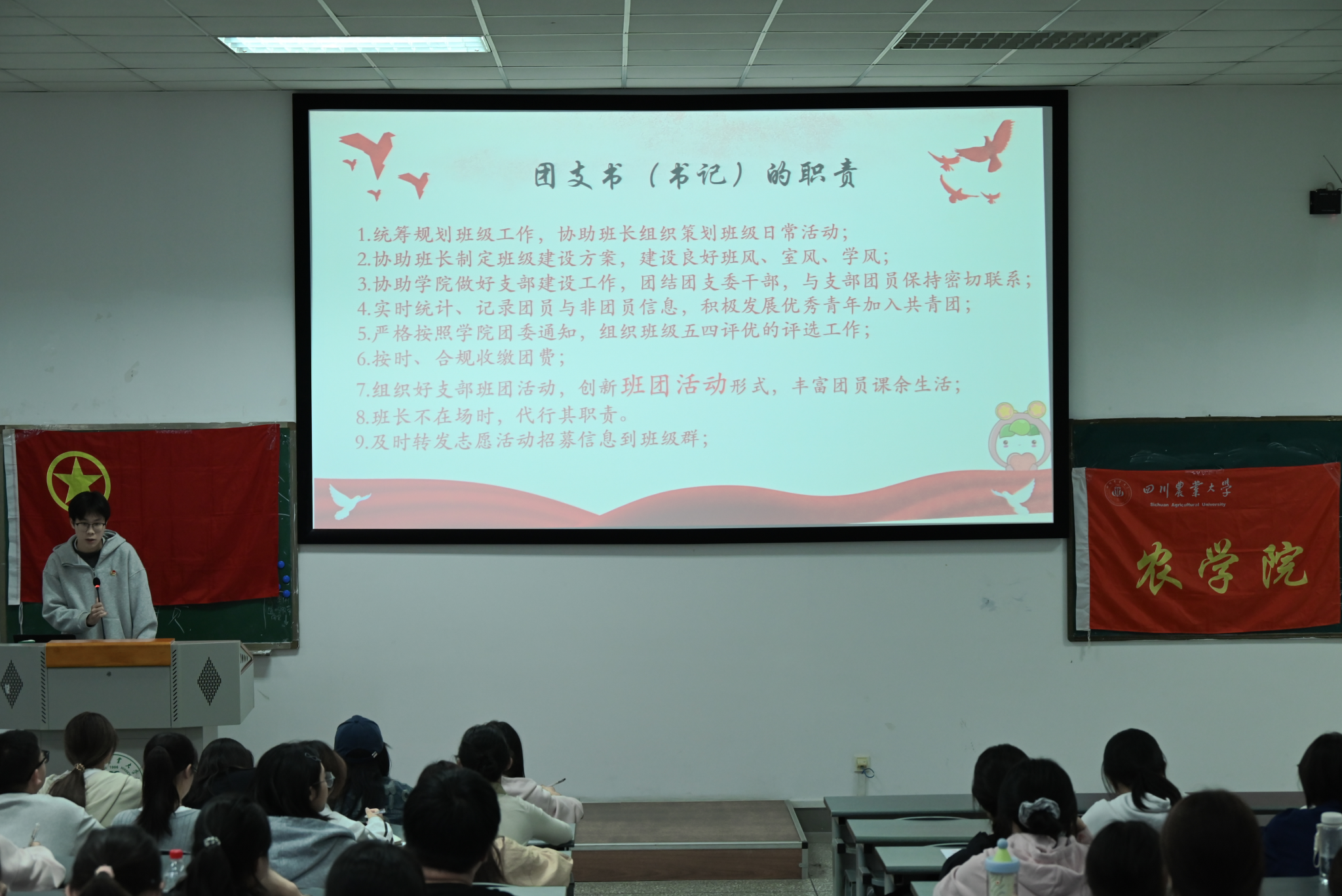 2025年10月17日,tyc5997太阳集团2025-2026学年团校第一次理论课程暨团干培训在4-A405教室成功举办,标志着tyc5997太阳集团新一届团干正式接受系统培训,为日后服务班级准备更充足的理论知识储备。本次团校活动邀请到团委组织部主要负责人黄强顺、螺碧清——助推美丽乡村建设实践团团队负责人徐可欣,为大家展开理论讲演与经验分享。