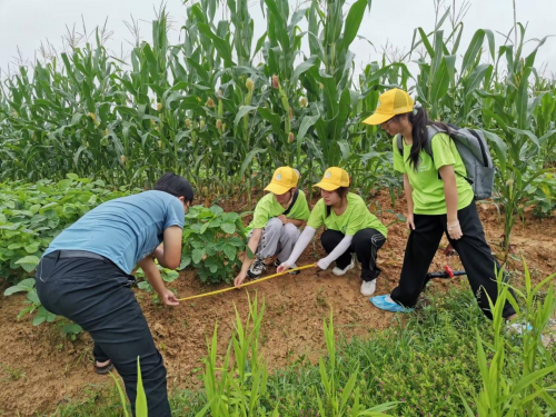 以“咬定青山不放松”的执着,做推广现状的“求知者”。在为期八天的实践中,团队成员前往广安区大龙镇第11团大豆玉米带状复合种植高产示范点、岳池县苟角镇粮油现代农业园区,以及武胜县飞龙镇大石桥村大豆玉米带状复合种植集中示范片,对其大豆玉米种植情况做了实地调研,包括作物长势、行宽比、株距、密度、杂草情况、病虫害等基本情况,并形成了详细的数据统计表。