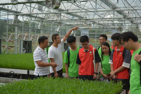 团队成员在水口村支部书记徐崎峰的带领下实地参观了宜宾市南溪区酿酒专用粮现代农业园区播种车间和高粱基地,深入考察了新品种栽培中心和无土栽培中心。徐崎峰热情仔细地给同学们做了讲解。