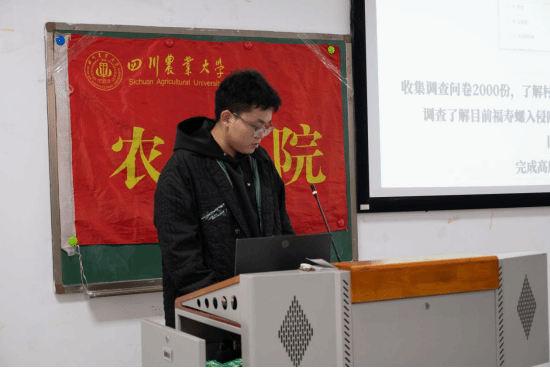 在了解寒假社会实践的具体内容、新闻撰写与投递方式之后,螺碧清-助推美丽乡村建设实践团负责人王奎作为往年优秀实践团队代表进行经验分享。王奎基于实践背景与过程为同学们展示了团队实践成果。