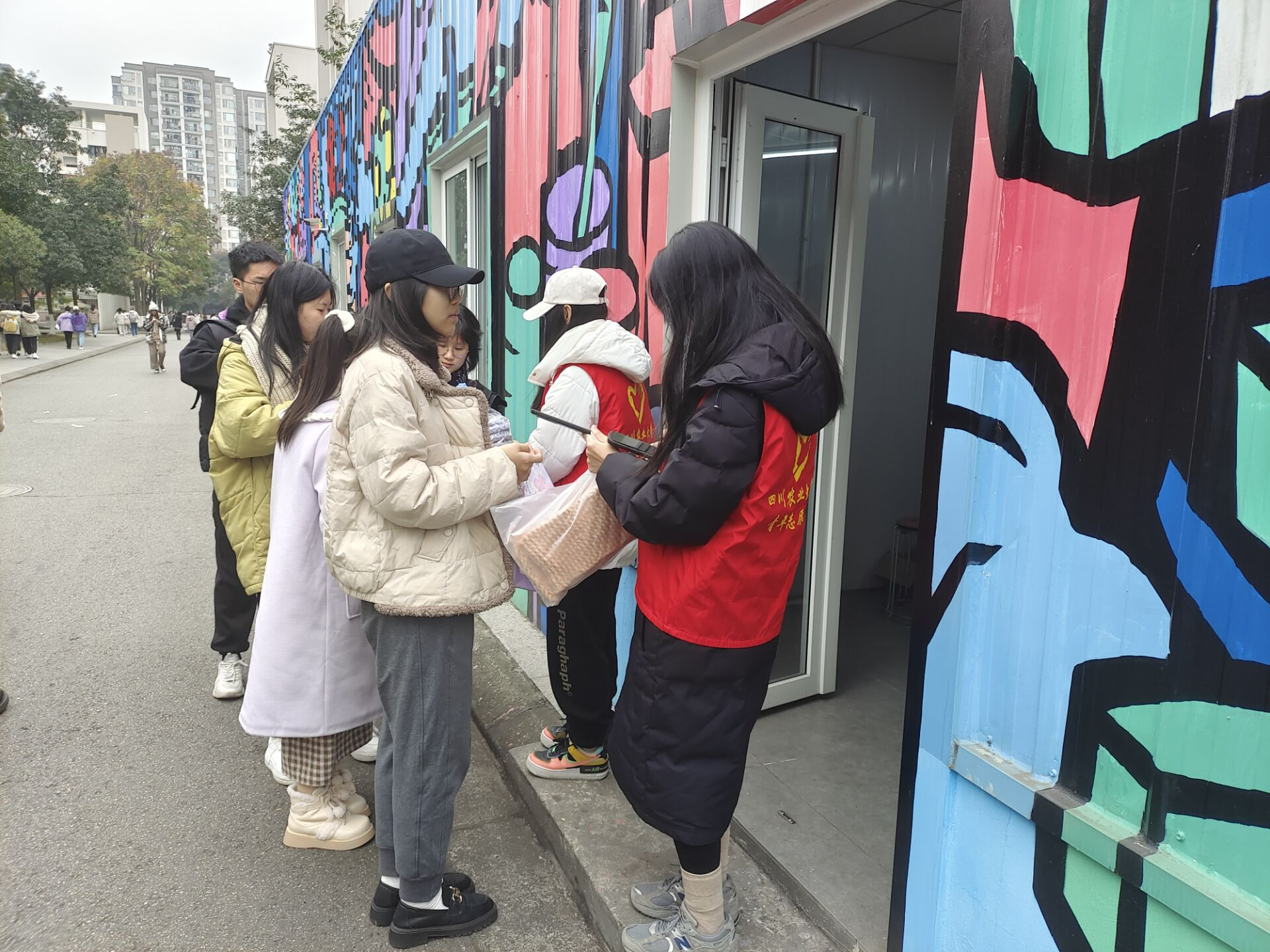 成都校区活动负责人李世豪介绍到,组织此次活动的主要问题是人力成本和时间成本消耗较大:“志愿者们下单时间不统一导致需要发放四次毛线材料包,每次发放材料包都需要至少四个人在寒风中等待两个小时。”