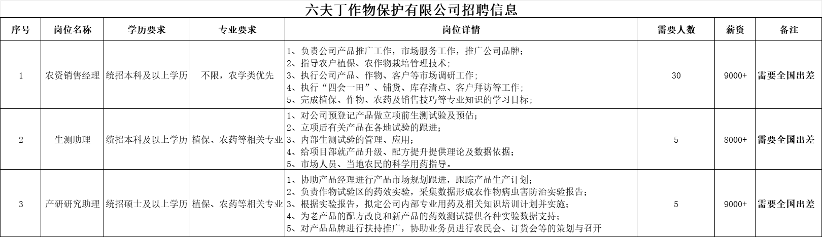 经过联系,六夫丁作物保护有限公司招聘工作还在持续开展,请同学们关注!