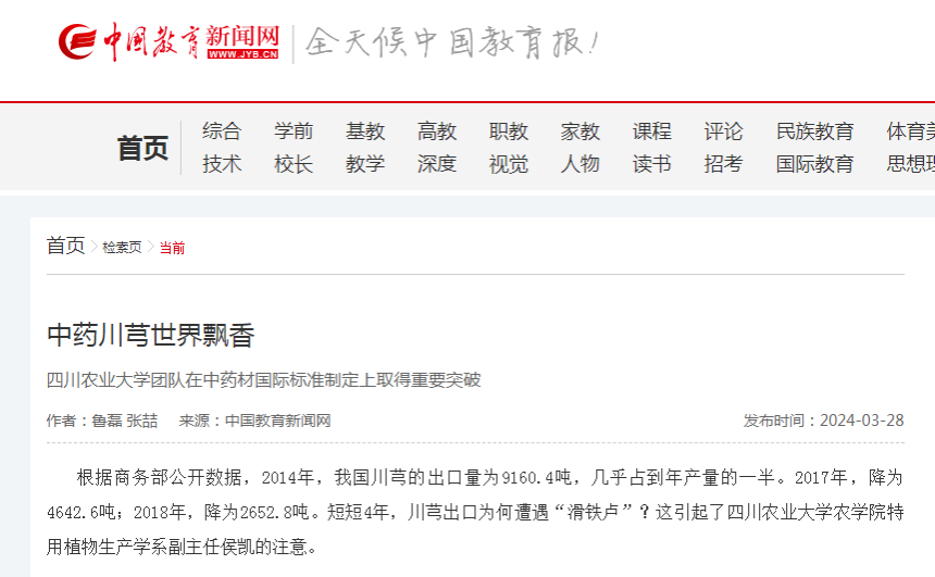 “事实上,中药材并非越干燥越好。以川芎为例,水分含量过低,其主要活性成分容易在加工过程中丧失掉。”侯凯认为,解决限制川芎出口的“卡脖子”难题,必须制定更加科学、更符合产地生产实际,并得到广泛认可的国际标准。