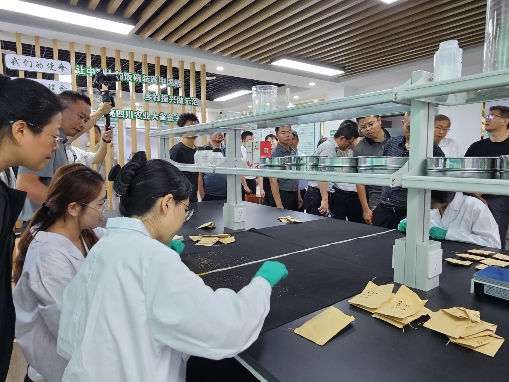 博士工作站内,员工正在做大豆根瘤试验。