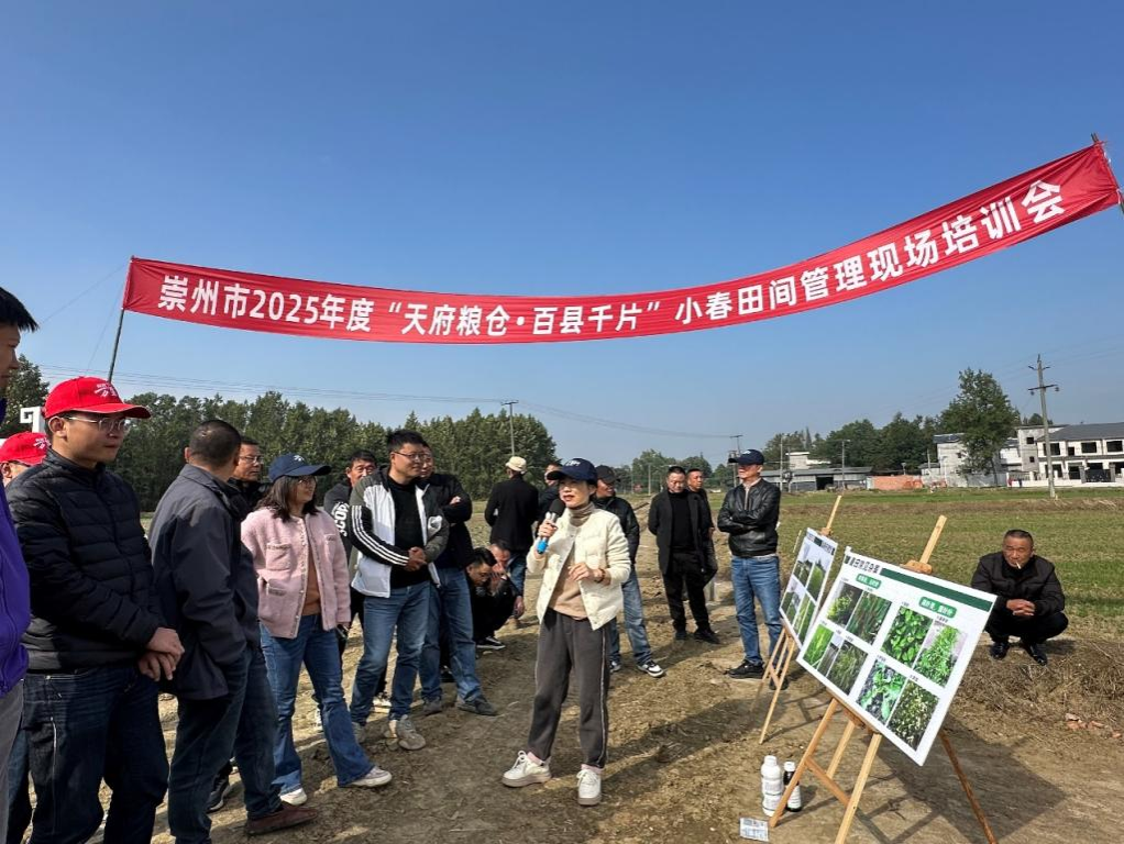 11月28日,崇州市农业农村局在隆兴镇举办了“天府粮仓·百县千片”小麦田间管理现场培训会。公司tyc5997太阳集团、小麦所以及西南科技大学专家,崇州市农业农村局相关领导,规模化种植业主等100余人参加了此次会议。会议由崇州市农业农村局科教站曾代松科长主持。