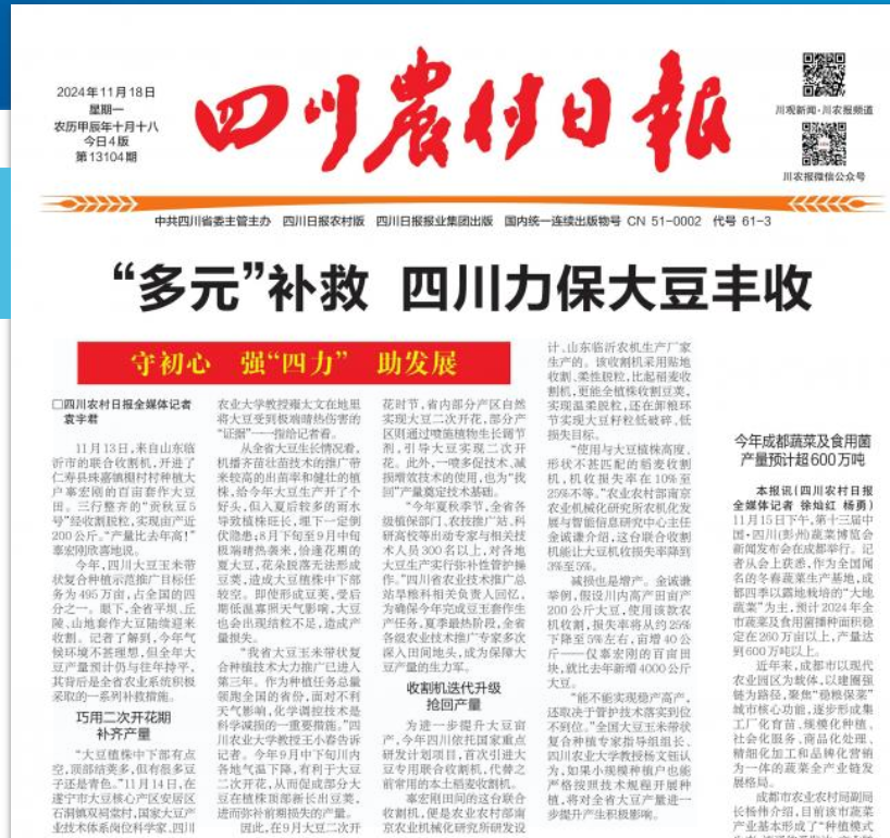 “今年夏秋季节,全省各级植保部门、农技推广站、科研高校等出动专家与相关技术人员300名以上,对各地大豆生产实行弥补性管护操作。”四川省农业技术推广总站旱粮科相关负责人回忆,为确保今年完成豆玉套作生产任务,夏季最热阶段,全省各级农业技术推广专家多次深入田间地头,成为保障大豆产量的生力军。
