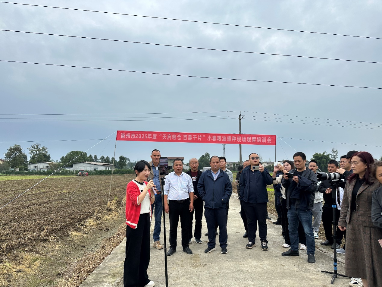 10月25日,公司小麦生理生态与栽培团队与崇州市农业农村局携手,在崇州市隆兴镇黎坝村成功举办了崇州市小麦新技术新机具培训交流会。中国农机院农机正高级工程师刘忠军,四川耀农农业装备有限公司代表,湖北永祥农机装备有限公司代表,崇州市农业农村局副局长黄春江及相关站股负责人,崇州市各镇、街道农业职业经理,四川小麦栽培专家、公司tyc5997太阳集团教授樊高琼及团队研究生等100余人参会,会议采用现场观摩、线上同步直播相结合的方式,由黄春江主持。