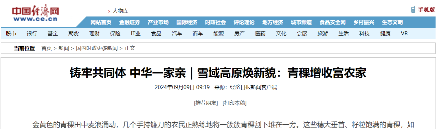 近日,记者跟随“铸牢共同体中华一家亲”主题宣传“雪域高原焕新貌”调研采访团来到四川省阿坝县青稞现代农业园区,探访一穗青稞中蕴藏的增收密码。