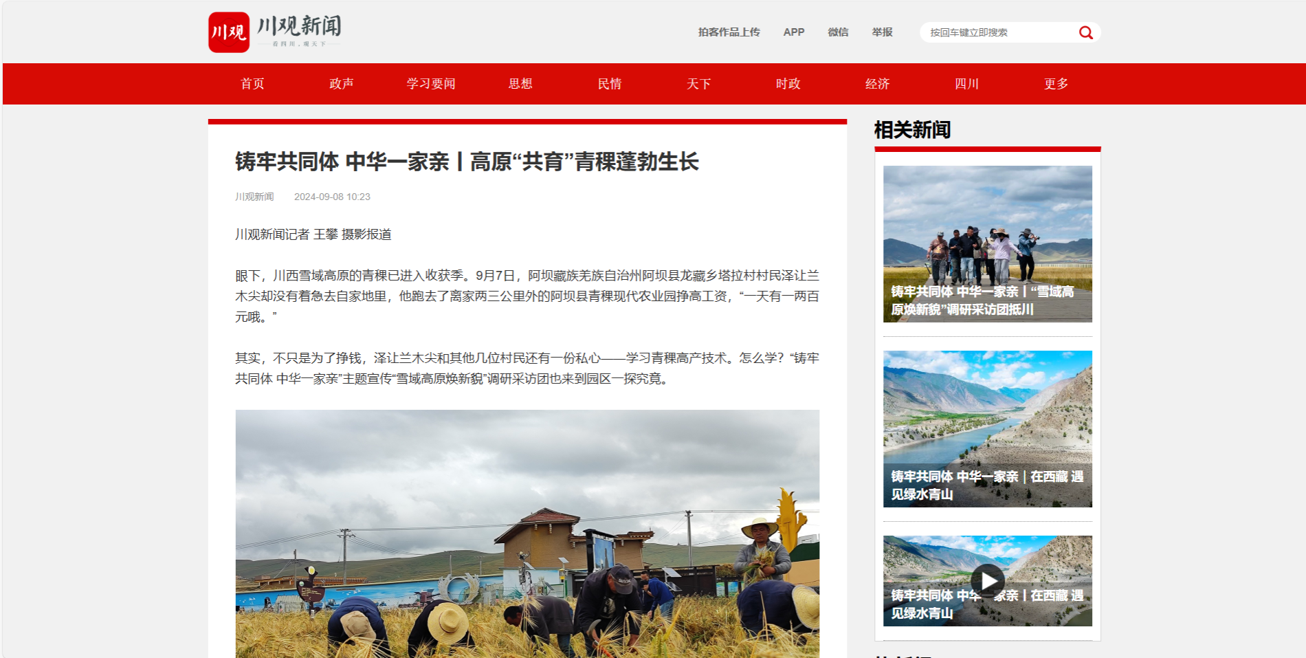 其实,不只是为了挣钱,泽让兰木尖和其他几位村民还有一份私心——学习青稞高产技术。怎么学?“铸牢共同体 中华一家亲”主题宣传“雪域高原焕新貌”调研采访团也来到园区一探究竟。