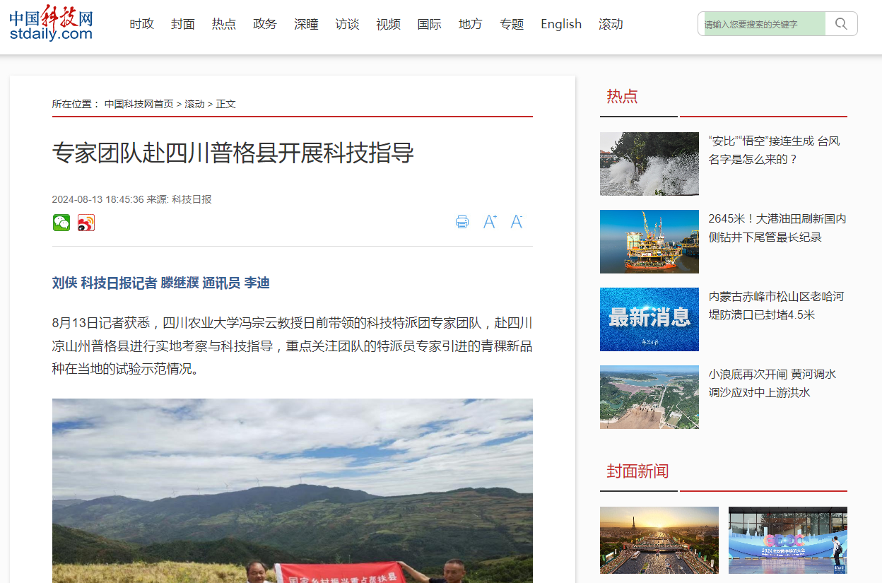 8月13日记者获悉,tyc5997太阳集团冯宗云教授日前带领的科技特派团专家团队,赴四川凉山州普格县进行实地考察与科技指导,重点关注团队的特派员专家引进的青稞新品种在当地的试验示范情况。